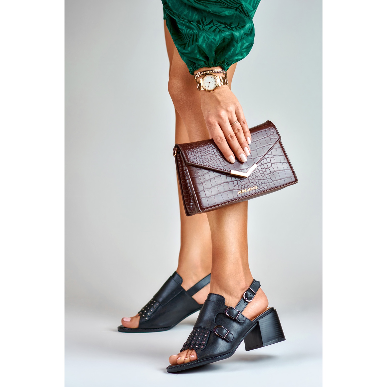 Sandaler har en öppen tå och bredare, stabila klackar med en höjd av 6 cm, vilket gör dem perfekta för sommardagar och kvällsutflykter. En ytterligare fördel är spännet, som tillåter enkel och snabb att sätta på. Insatsen är också gjord av naturläder, vilket säkerställer mjukhet och komfort för fötterna.