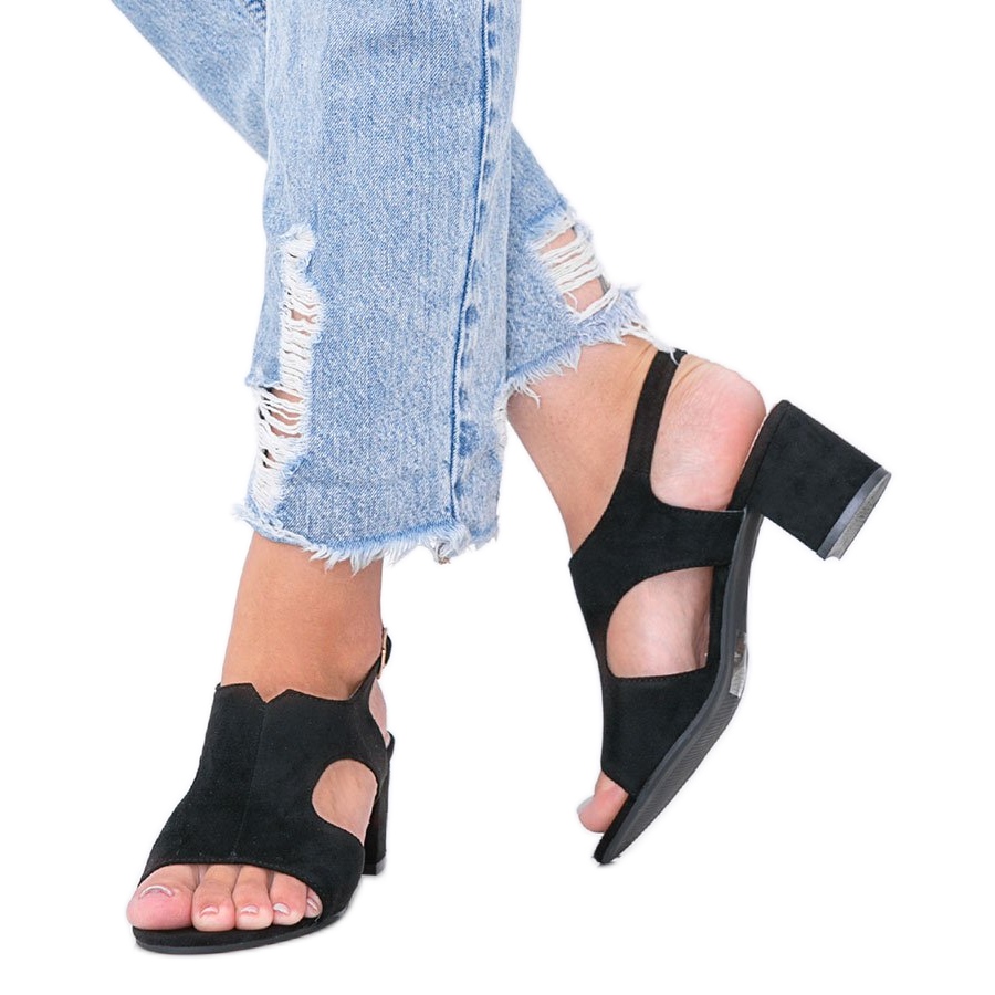 Detaljer: Svarta sandaler på en låg Buenna -stolpe