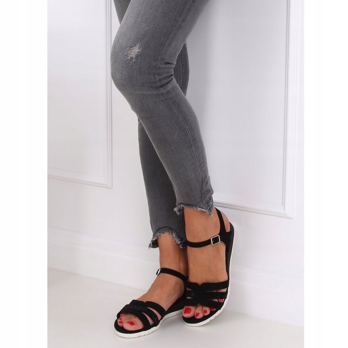 Upptäck elegans, komfort och stil i ett - svarta sandaler med låg kil NS113P Svart är ett måste i din sommarkollektion! Dessa damsandaler är gjorda av ekologisk mocka av hög kvalitet och kombinerar moderiktig design med praktiska egenskaper, perfekt för vardagsutflykter.