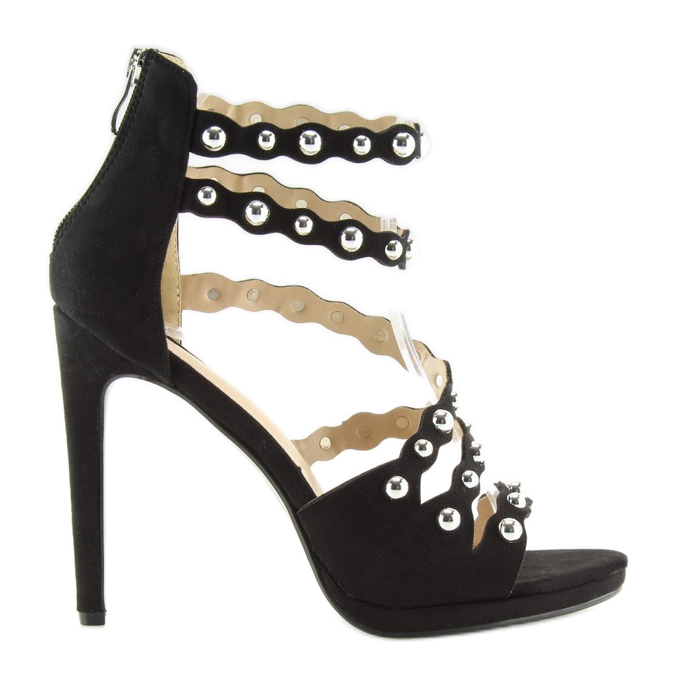 Dessa sandaler kännetecknas av imponerande silverapplikationer i form av kulor - nitar, som ger dem en unik karaktär. En smal 11,5 cm klack och en 1,5 cm hög plattform förlänger dina ben optiskt, vilket ger varje styling en feminin, förförisk dimension. WOW-effekt garanterad!