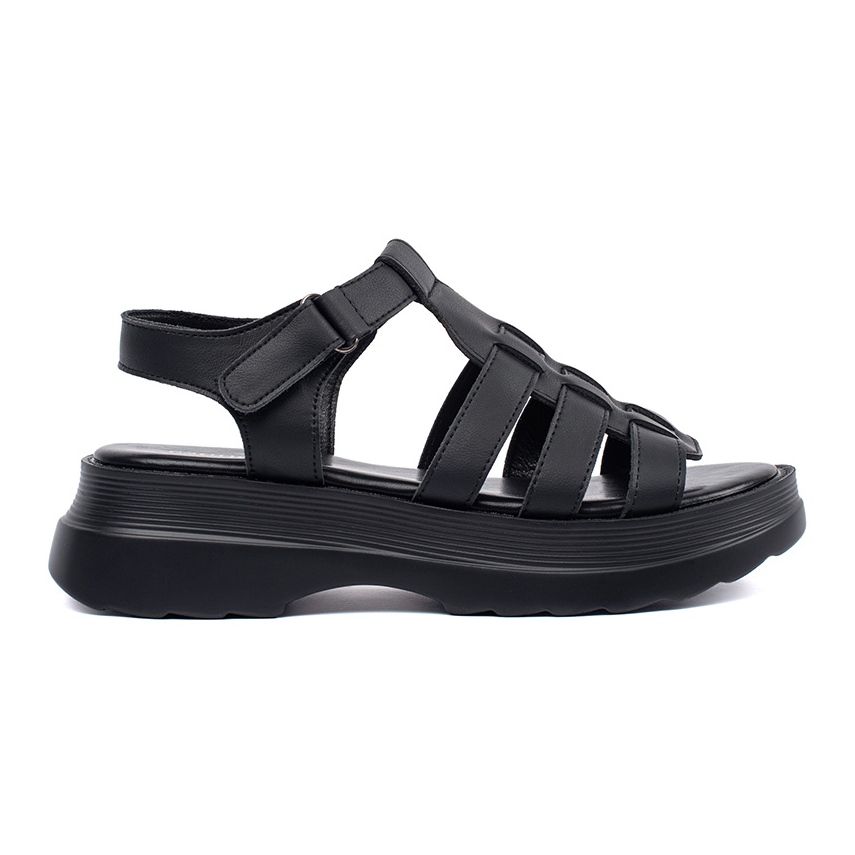 Svarta sandaler på Goodin -plattformen är det perfekta valet för kvinnor som värderar elegans och komfort. Dessa sandaler är tillverkade av högkvalitativt naturläder och säkerställer inte bara hållbarhet utan också komforten att bära hela dagen. En öppen fästning och brist på näsa gör dem till en bra lösning för varma sommardagar, vilket garanterar adekvat fotventilation.