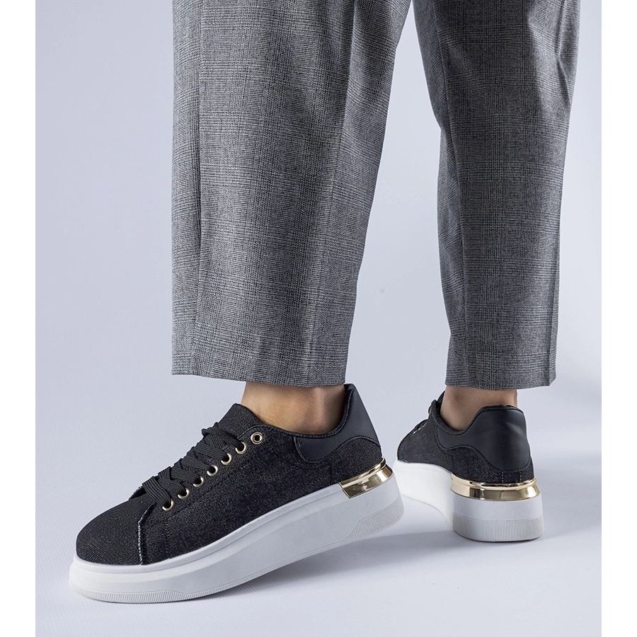 Svarta sneakers på Scuderlando -plattformen är det perfekta valet för kvinnor som värderar komfort och fashionabla utseende. Dessa styva skor är gjorda av slitstark plast och kännetecknas av ett spetsfäste och en rund tå, vilket säkerställer komfort och frihet när man bär. Den låga profilen för skor innebär att de perfekt smälter in i de unga generationens eleganta stiliseringar och lägger till lite sportig ren.