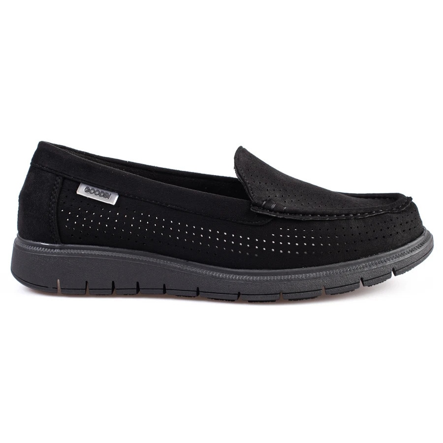 SHELOVET Svarta Shelovet genombrutna loafers för kvinnor