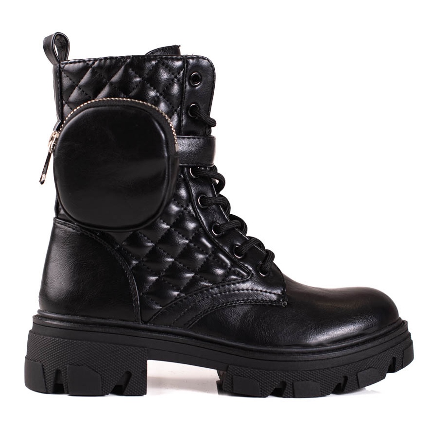 Dessa stövlar är gjorda av högkvalitativt läderimitation och är det perfekta valet för höst- och vinterpromenader. Ytterligare isolering kommer att säkerställa att låga temperaturer inte kommer att vara ett hinder för dina stadsäventyr. Typen av infästning, det vill säga dragkedja och snörning, säkerställer en perfekt passform av skorna till foten, och kardborrefästsystemet möjliggör snabb och enkel användning av den praktiska fickan, perfekt för småsaker som du alltid vill ha med dig.