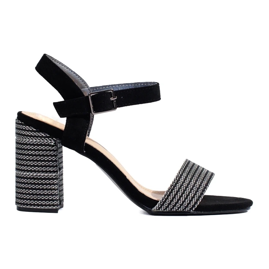 Kvinnors svarta Shelovet -sandaler med en dekorativ häl - elegans för varje ceremoni