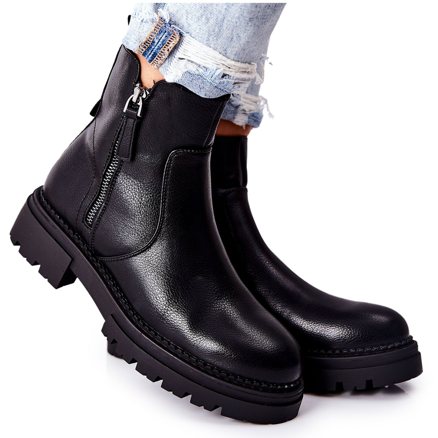 PE1 höga ankelstövlar med dragkedjor i svart är ett idealiskt förslag för kvinnor som värdesätter stil, komfort och funktionalitet. Dessa ankelboots är gjorda av ekologiskt läder och är inte bara miljövänliga utan också extremt hållbara. Tack vare isoleringen med en skofilt förblir dina fötter varma även under kallare dagar, vilket gör dem till ett utmärkt val för höst- och vintersäsongen.