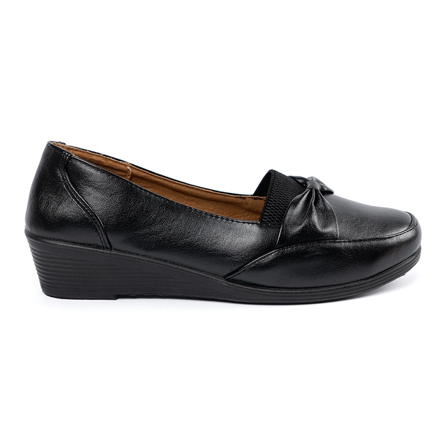 Svarta skjutskor med en båge är en kombination av elegans och komfort, som är ett måste för varje fashionabla kvinna. Deras klassiska svarta färg gör att de passar många stilar, både vardagliga och mer formella. Dessa skor är gjorda av högkvalitativa ekologiska läder och är hållbara och enkla att ta hand om, vilket gör dem till det perfekta valet dagligen.