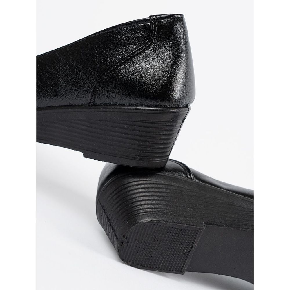 Den karakteristiska runda tån och byggd -i hälen säkerställer komfort, och höjden på kilen på 5 cm höjer subtilt figuren utan att ge upp bekvämligheten. En ytterligare fördel är den charmiga bågen, som ger dem en unik charm och gör att de sticker ut från andra modeller.