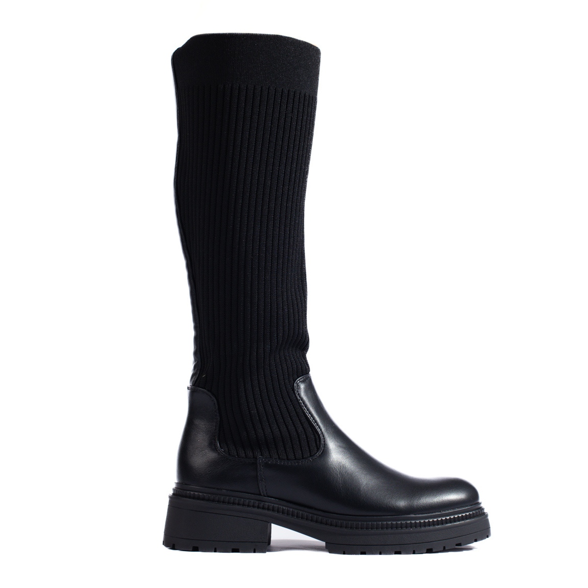 Den praktiska dragkedjan och slip-on designen gör det enkelt att ta av och på kängorna. Dessa skor är utrustade med en rund tå, har en övre bredd på 36 cm och en höjd på 37 cm, som når till knäet.