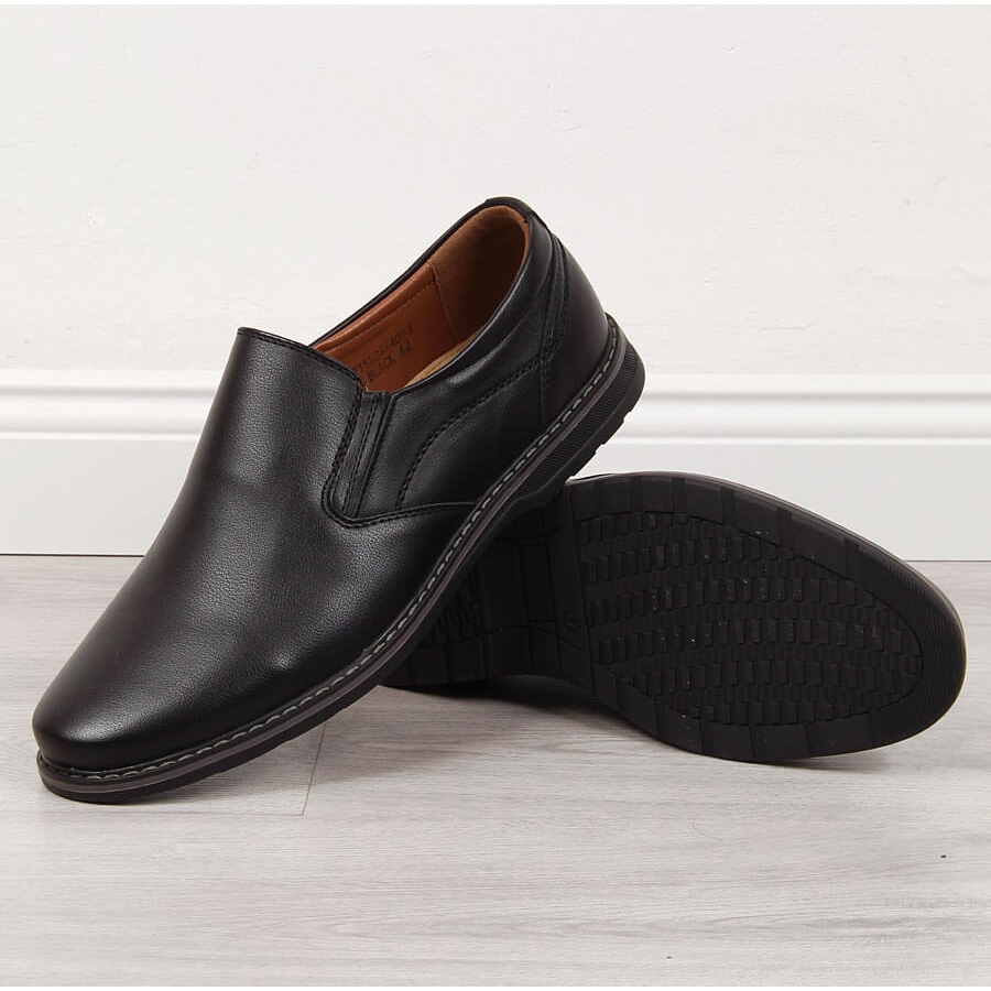 Herrskor infogade nyheter - klassiker i en modern utgåva. Det svarta, släta ekologiska läderöverdelen och en minimalistisk, rund näsa bildar ett elegant, universellt snitt som kommer att fungera både i avslappnade och mer formella stiliseringar. Slip-on-modellen är bekvämligheten med att snabbt sätta på utan att ge upp elegans-perfekta skor för våren och hösten.