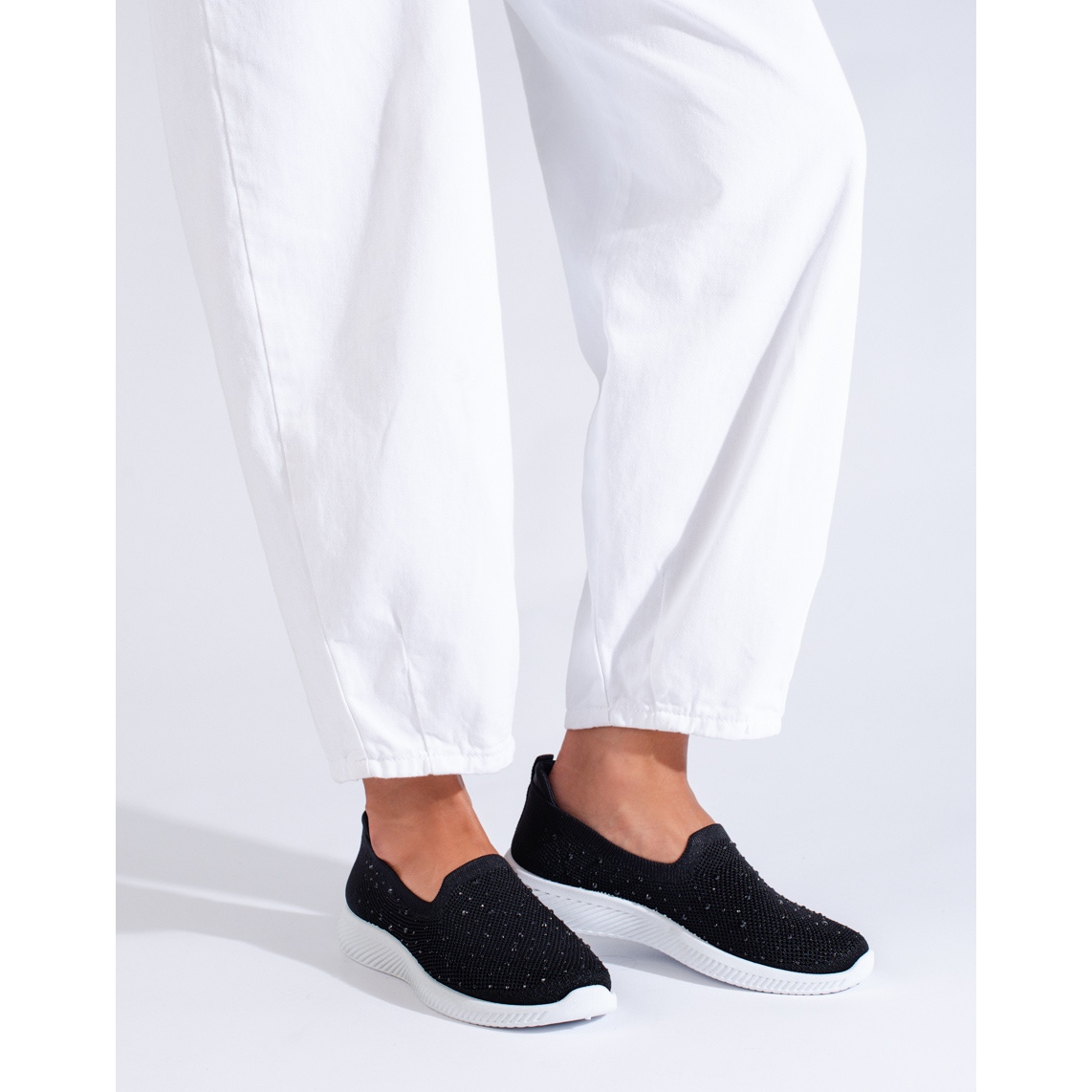 Det här är slip-on-skor i svart tyg med nitar från det berömda märket Shelovet, som passar perfekt in i en sportig och avslappnad stil. Perfekt för vardagsbruk, dessa fashionabla skor kommer att ge komfort och rörelsefrihet tack vare den uppbyggda, mjuka hälräknaren och det flexibla ovanmaterialet, som är tillverkat av 100 % slitstarkt textilmaterial.