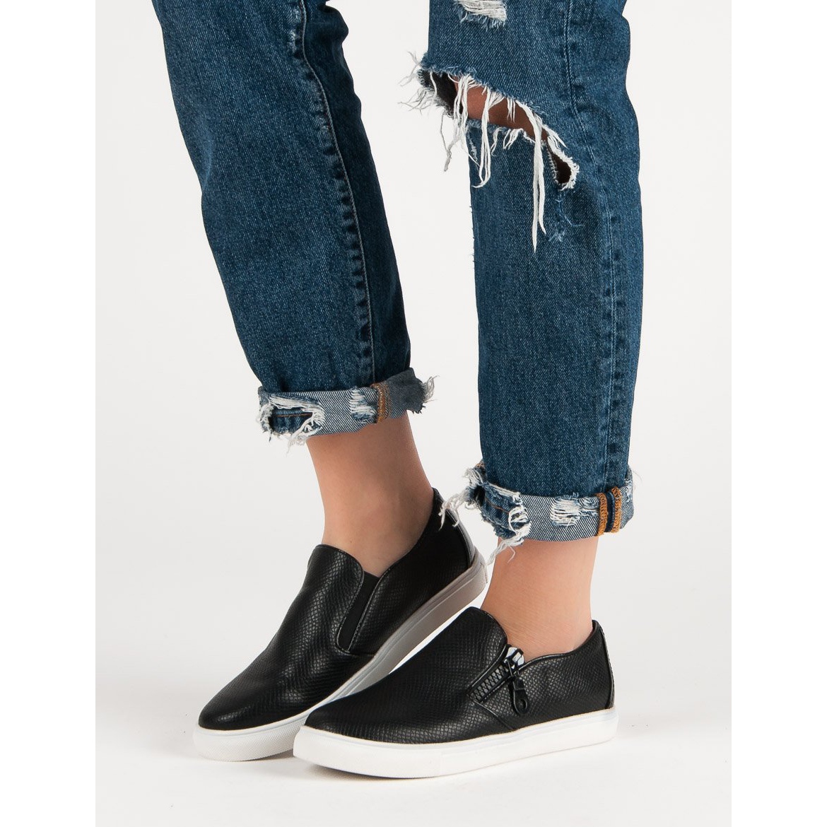 Svarta slippons från Weide är ett elegant och stilrent förslag för moderna kvinnor som värdesätter komfort och ett moderiktigt utseende. Dessa slip-on skor, utan klackar, är gjorda av högkvalitativt ekologiskt läder, vilket gör dem till ett idealiskt val för människor som bryr sig om ekologi. En intressant detalj är den dekorativa dragkedjan, som ger dem originalitet och karaktär.