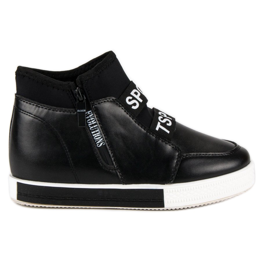Svarta sneakers med dragkedja är en kombination av ett sportigt snitt med en modern finish. De erbjuder tillräcklig stabilitet tack vare en styv häl och en solid gummisula med slitbana, vilket avsevärt ökar deras funktionalitet. Dessutom gör den invändiga textilsulan och isoleringen varje steg bekvämt och fötterna håller sig varma.