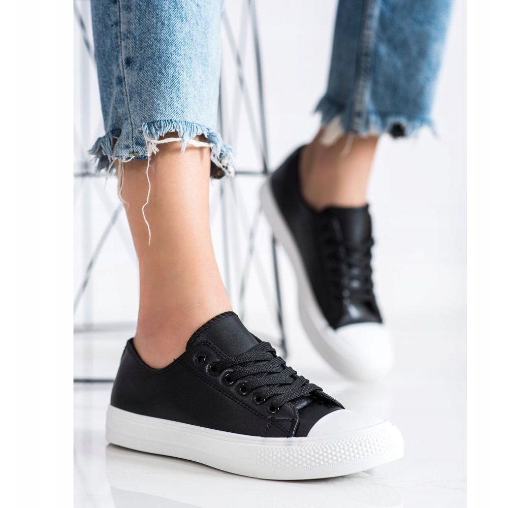 Detaljer: SHELOVET Svarta sneakers med ekoläder