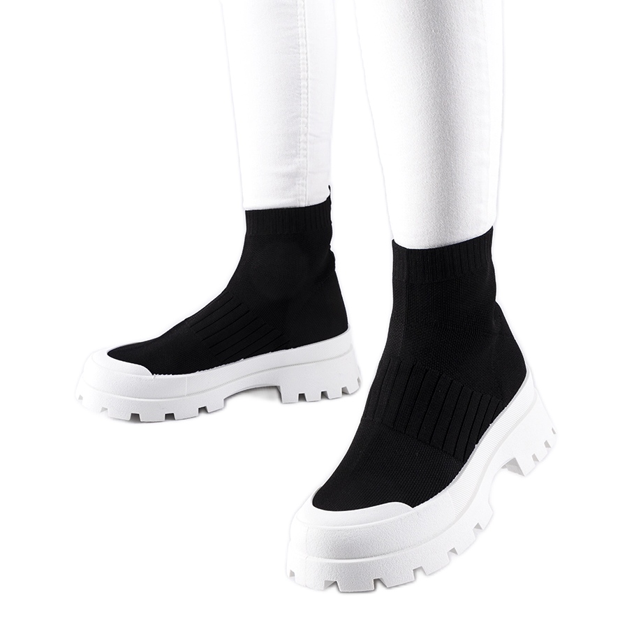 Svarta sneakers med en flexibel varden övre är det perfekta valet för kvinnor som vill kombinera komfort med ett fashionabelt utseende. Dessa höga skor kännetecknas av en unik design och var noggrant gjorda av textilmaterial av hög kvalitet, vilket säkerställer både komfort och hållbarhet under lång tid.