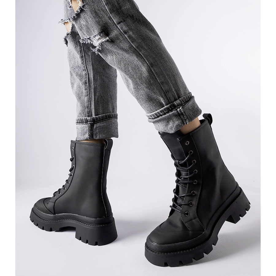 Snörningsförslutningen garanterar att stövlarna kommer att passa din fot perfekt och erbjuder exceptionell bärkomfort. Den höga ankelskärningen ger inte bara skorna ett unikt utseende, utan ger också extra skydd mot kall höst- eller vinterluft.
