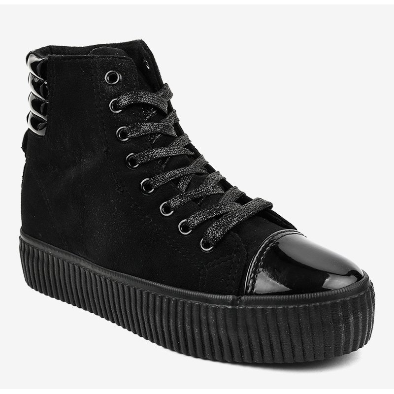 TL-53-modellen passar perfekt in i nuvarande trender och låter dig samtidigt experimentera fritt med din egen stil. Höjden på skorna, som når 15 cm, gör att de framhäver figuren perfekt, och den platta hälen säkerställer komfort vid varje steg. Sneakersna finns i en elegant svart färg vilket gör att de matchar många stilar – från avslappnad till lite mer elegant.