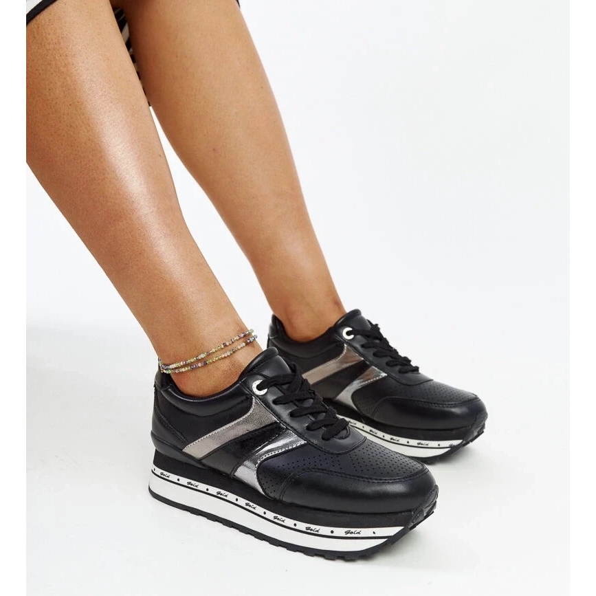 Detaljer: Svarta sneakers på den höga sulan i Mehari