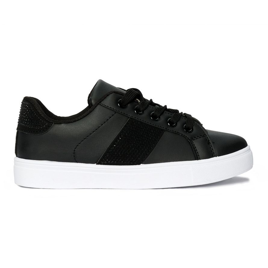 Svarta sneakers är ett absolut måste i varje garderob. Deras universella färg, ekologiskt läder och en sensuell accent i form av zirkon gör det perfekt att passa in i både avslappnade och mer eleganta kläder. En rund tå och en inbyggd, mjuk häl garanterar komfort och stöd under vardagliga aktiviteter.