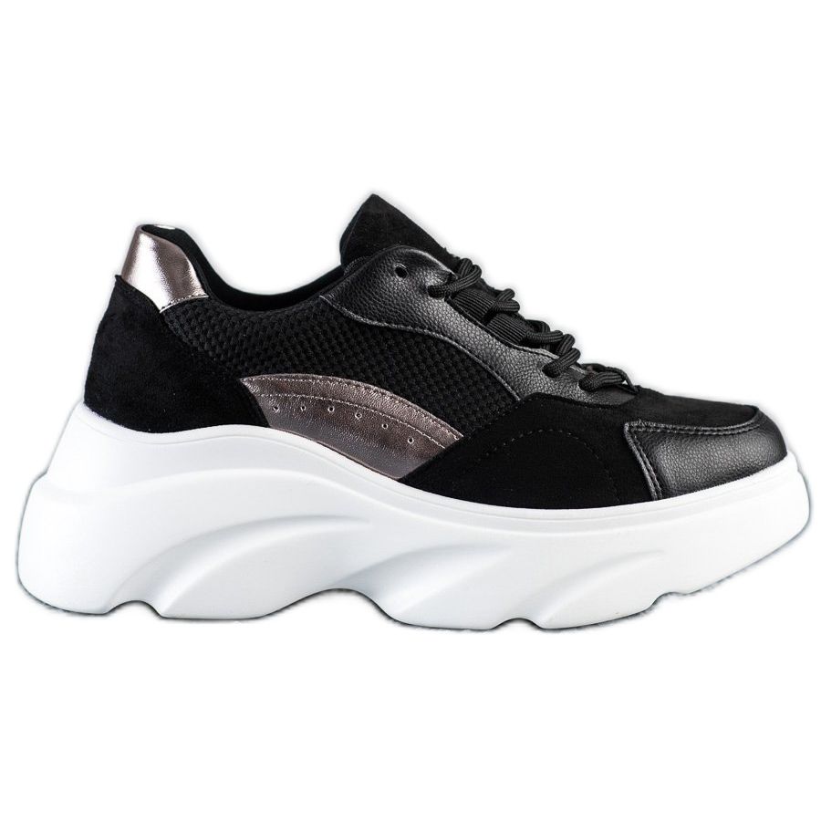 Sneakersna kännetecknas av en uppbyggd, mjuk klack och en rund tå, vilket säkerställer maximal bärkomfort. Den 7 cm höga plattformen tillför inte bara elegans, utan gör också figuren smalare optiskt. Tillverkade av material av högsta kvalitet - 50% konstläder och 50% mockaimitation - de är både snygga och funktionella. Den syntetiska sulan med slitbana garanterar utmärkt grepp och hållbarhet, perfekt för olika väderförhållanden.