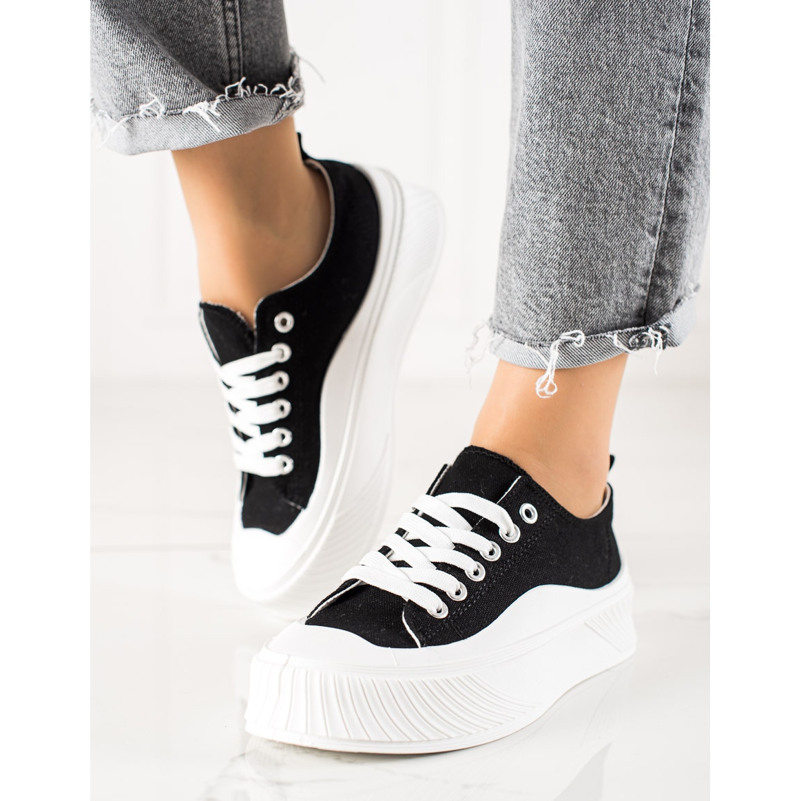 Vi presenterar Seastar Black Platform Sneakers, det perfekta valet för moderna kvinnor som värdesätter komfort och stil. Dessa låga svarta sneakers är en klassiker som kommer att vara perfekta för avslappnad, vardaglig styling.