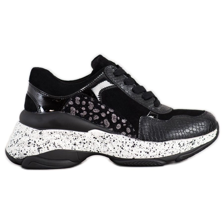 Svarta SDS sneakers är ett perfekt val för alla årstider - både på kallare dagar på hösten och vintern, såväl som på våren och sommaren. Deras minimalistiska djurmönster ger dem en moderiktig karaktär, och deras låga höjd och 7 cm plattform gör dem bekväma och lätta att bära hela dagen.