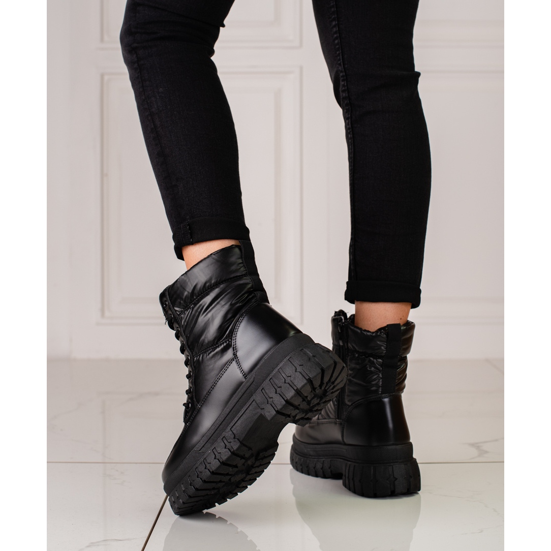 Svarta Shelovet snöstövlar är ett förslag som passar perfekt in i den avslappnade stilen, och deras klassiska färg gör att de matchar många olika outfits. De kommer säkert att bli ett favoritelement i garderoben för varje kvinna som värdesätter komfort och moderiktigt utseende. Gör vinterpromenader till ett nöje tack vare skor som kombinerar alla de viktigaste egenskaperna hos perfekta skor för den här tiden på året!