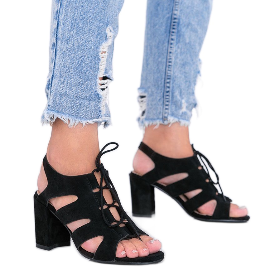 Detaljer: Svarta snörningssandaler på Isabella-stolpen