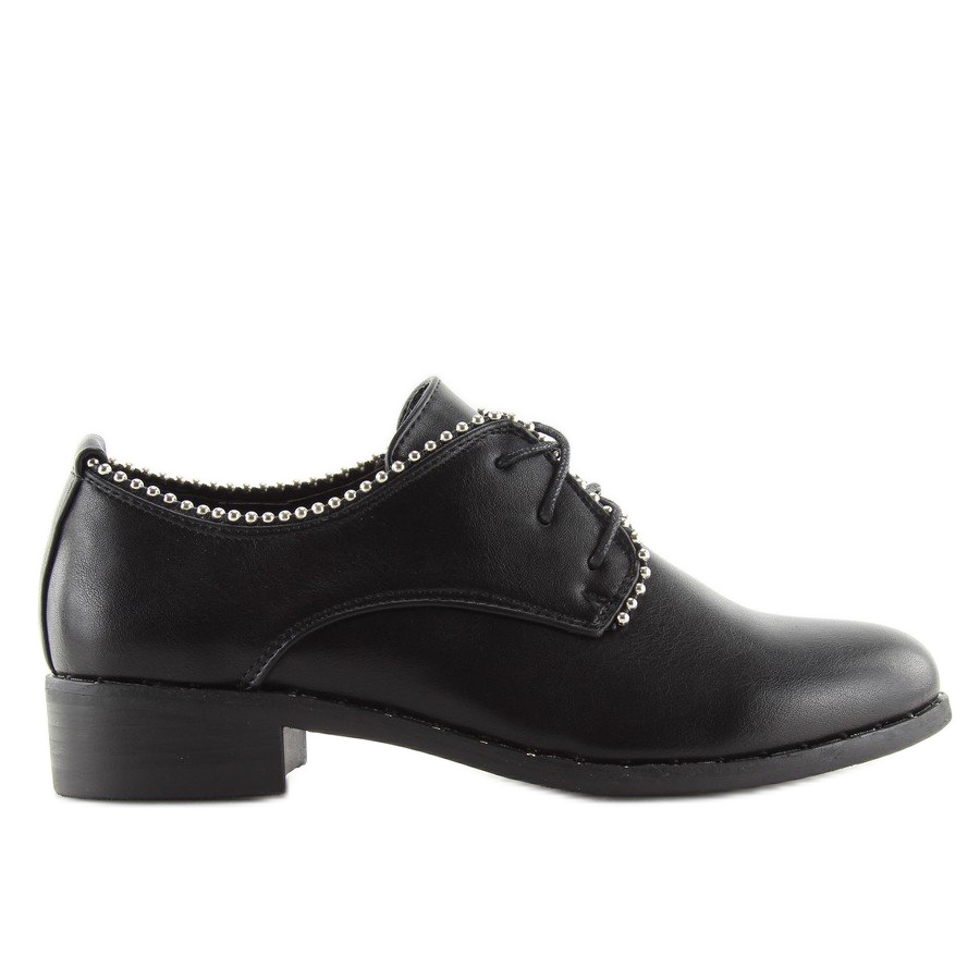 Upptäck elegans och komfort i ett - kvinnors svarta NC190 Svarta snörskor är det perfekta valet för en modern kvinna som värdesätter stil och komfort. Dessa eleganta loafers kombinerar en tidlös design med rockiga accenter, som silverpärlor och nitar som dekorerar runt sulan. Tack vare spetsfästningen anpassar sig skorna perfekt till fotens bredd, vilket säkerställer maximal bärkomfort.