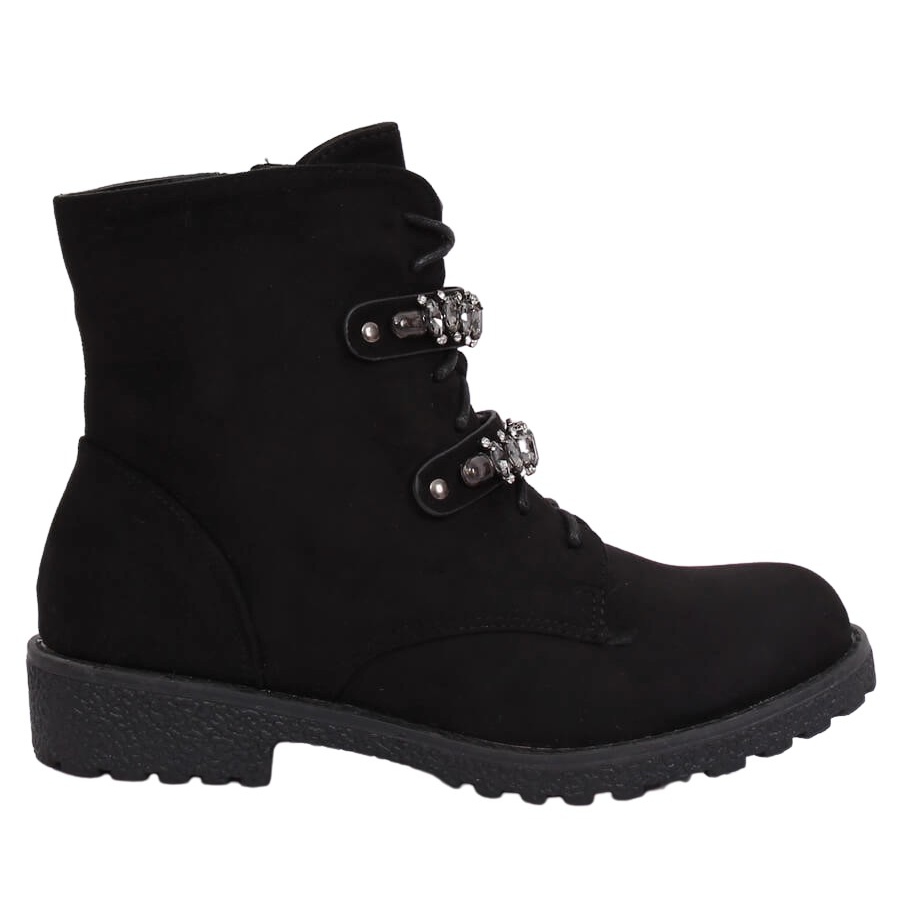 Vi presenterar unika svarta snörstövlar H8-118 Svart, som kommer att bli en oskiljaktig del av din vardagsgarderob. Dessa snygga skor är gjorda av högkvalitativ eko-mocka och kombinerar elegans med funktionalitet. Stövlarna kännetecknas av glänsande stenar på framsidan, som väcker uppmärksamhet och ger karaktär till varje styling.