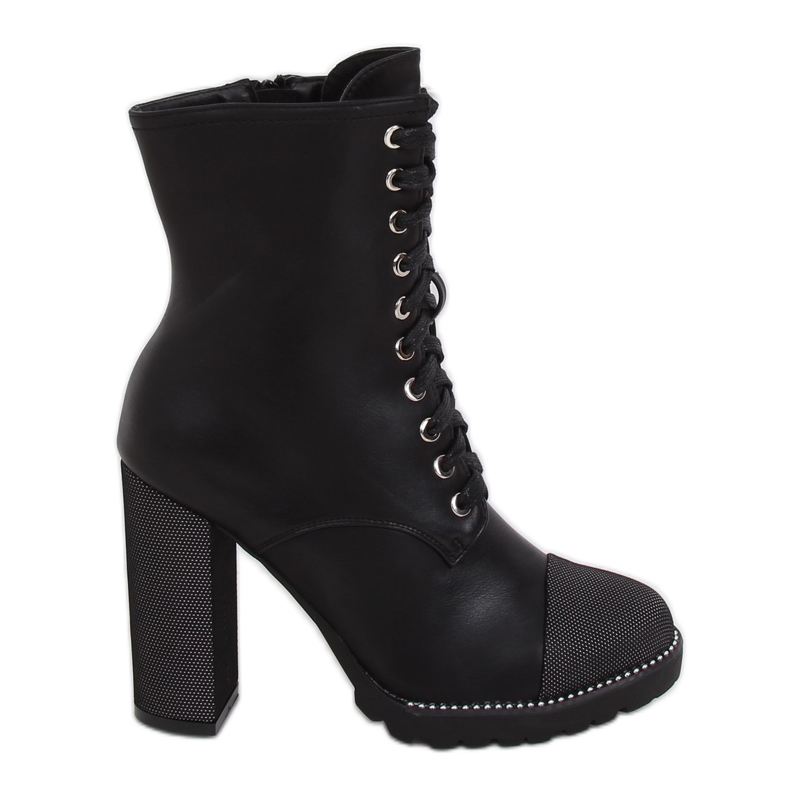 Upptäck unik stil och komfort tack vare NS081 Black ankelboots med snörning. Dessa iögonfallande ankelstövlar för kvinnor kännetecknas av sin eleganta design, där varje detalj är noggrant genomtänkt. Deras höga stolpe, 10,5 cm hög, framhäver figuren perfekt och säkerställer samtidigt stabilitet vid varje steg.