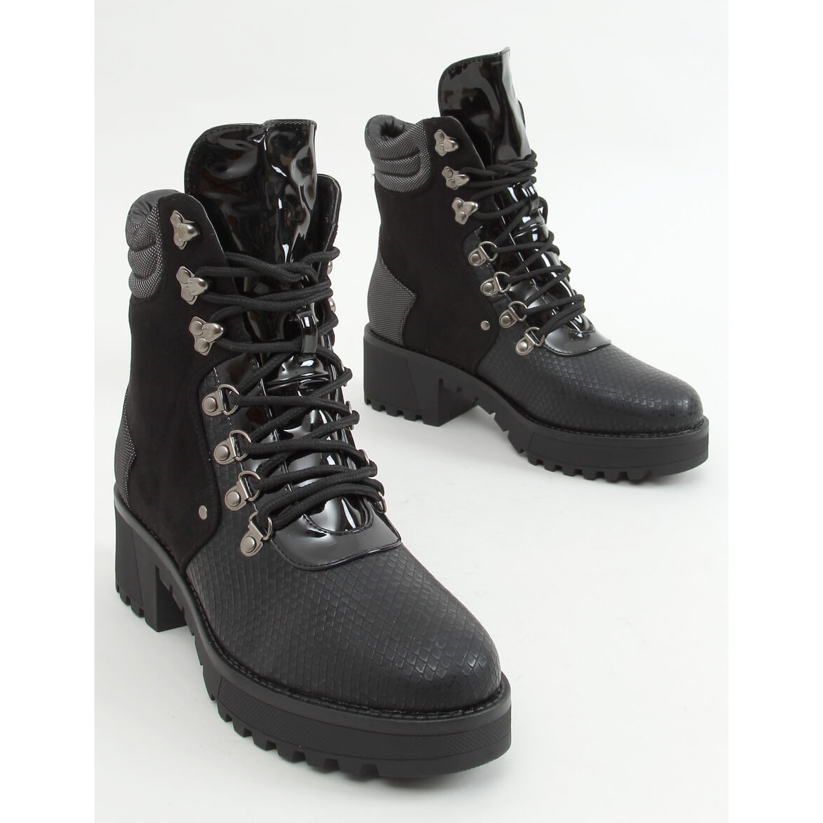 Upptäck elegans och komfort i en unik stil tack vare DF3712 Black ankelboots med snörning. Dessa unika damskor med bred klack, 5 cm hög, och en solid, tjock sula - 2,5 cm - är en perfekt kombination av modedesign och komfort som säkerligen kommer att dra till sig uppmärksamhet.