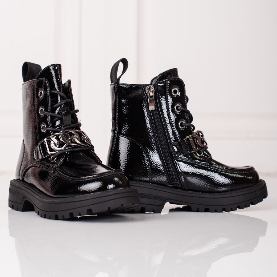 Klassisk, bekväm och varm - dessa svarta stövlar är ett universellt val för en tjej under kallare dagar. Tillverkad av ekologiskt läder, med en mjuk, byggd -upp häl och trevlig uppvärmning i form av en skorfilt, kombinerar en avslappnad och elegant stil, idealisk för både skola och för familjens utflykter.