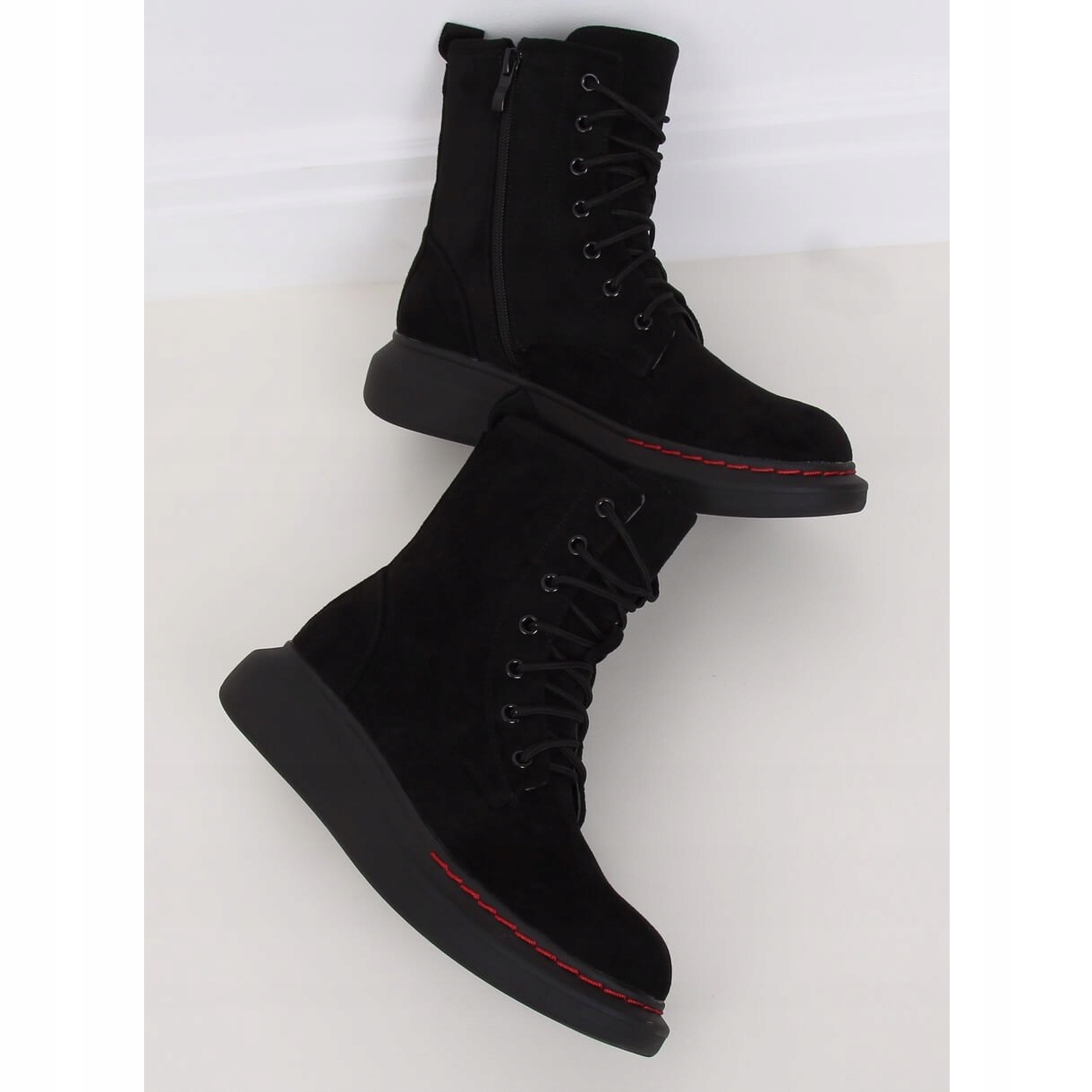 Svarta NC1070 Svarta ankelboots med snörning är ett idealiskt val för kvinnor som värdesätter komfort och ett moderiktigt utseende. Tillverkade av ekologisk mocka av hög kvalitet, de gläds inte bara med sin estetik, utan också med sin funktionalitet. Isolerade med delikat päls ger de komfort och värme under kalla dagar, vilket gör dem till ett perfekt val för höst och vinter.