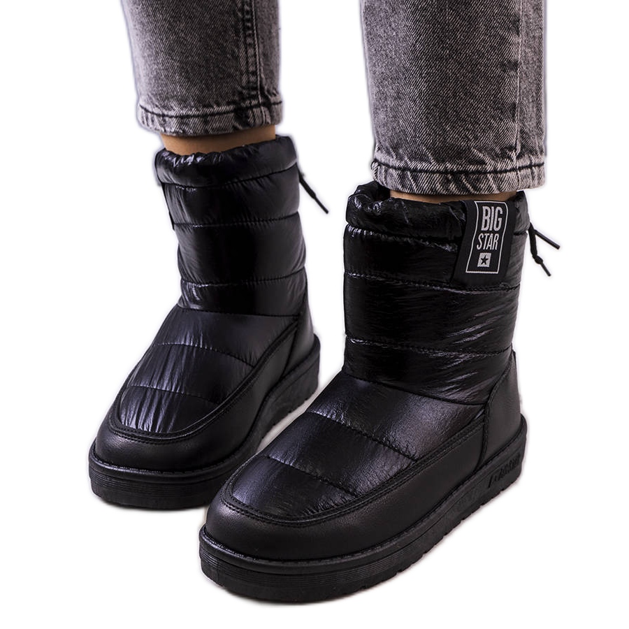 Big Star Snow Boots II274120 - Varm, funktionell och elegant för vintern. Perfekt för vardagliga, avslappnade stiliseringar - för jeans, isolerade leggings eller down jacka. Det klassiska, svart snittet med en rund näsa och en enkel form passar många uppsättningar, och den höga övre och mjuka pälsen i interiören säkerställer komfort på frostiga dagar.
