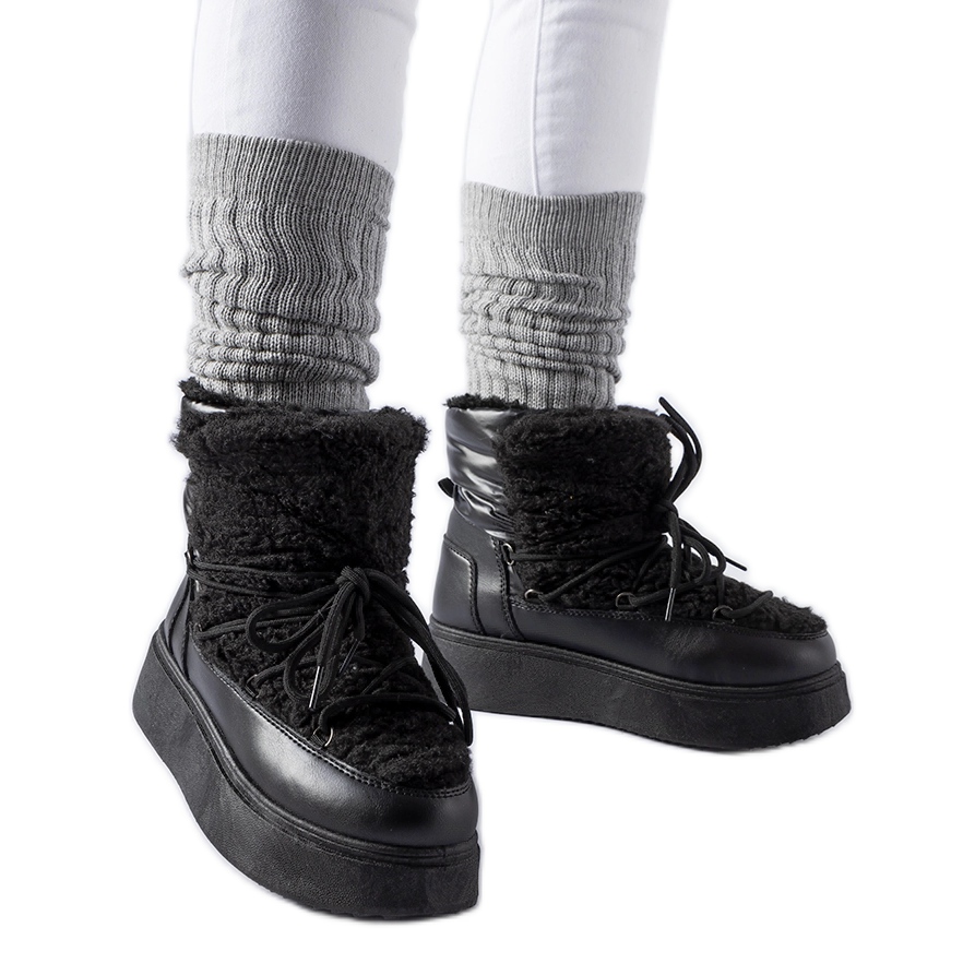 Information: Svarta snöstövlar på en massiv Elvio-plattform