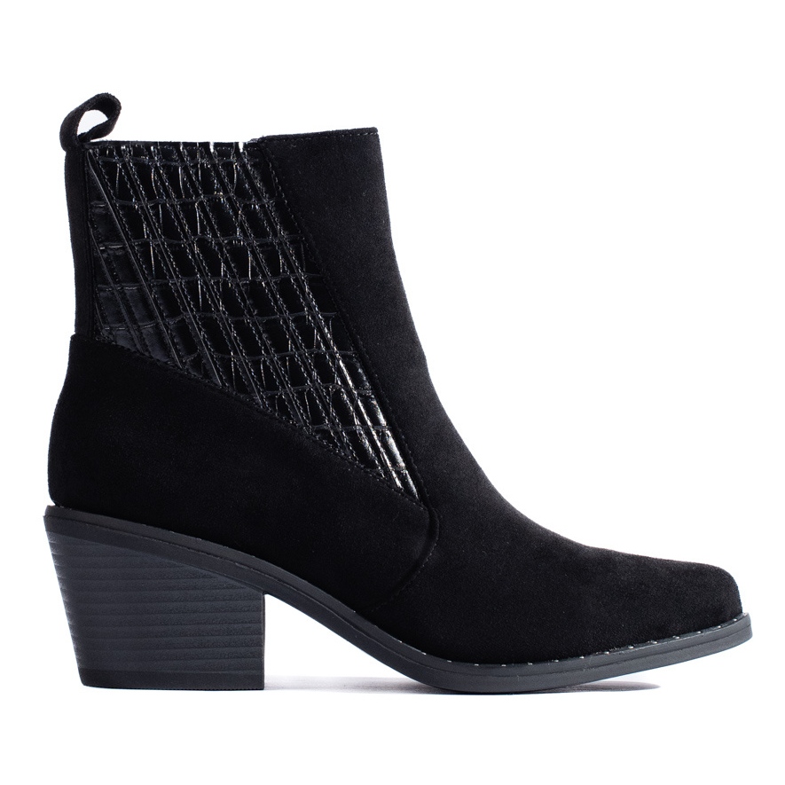 Svarta högklackade ankelstövlar från märket SHELOVET är kvintessensen av elegans i kombination med oumbärlig komfort. Perfekt för kvinnor som värdesätter universalitet och tidlös design, de kommer att vara ett utmärkt val för många tillfällen.