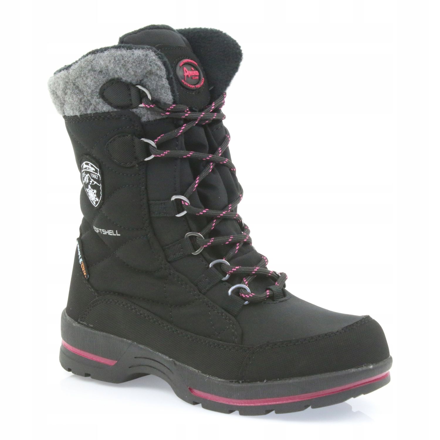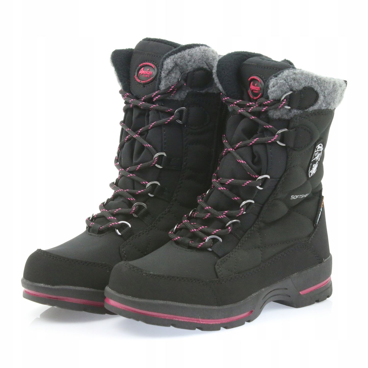 American Club American Club Svarta softshell -snöskor med amerikanskt SN19 / 20 -membran rosa grå