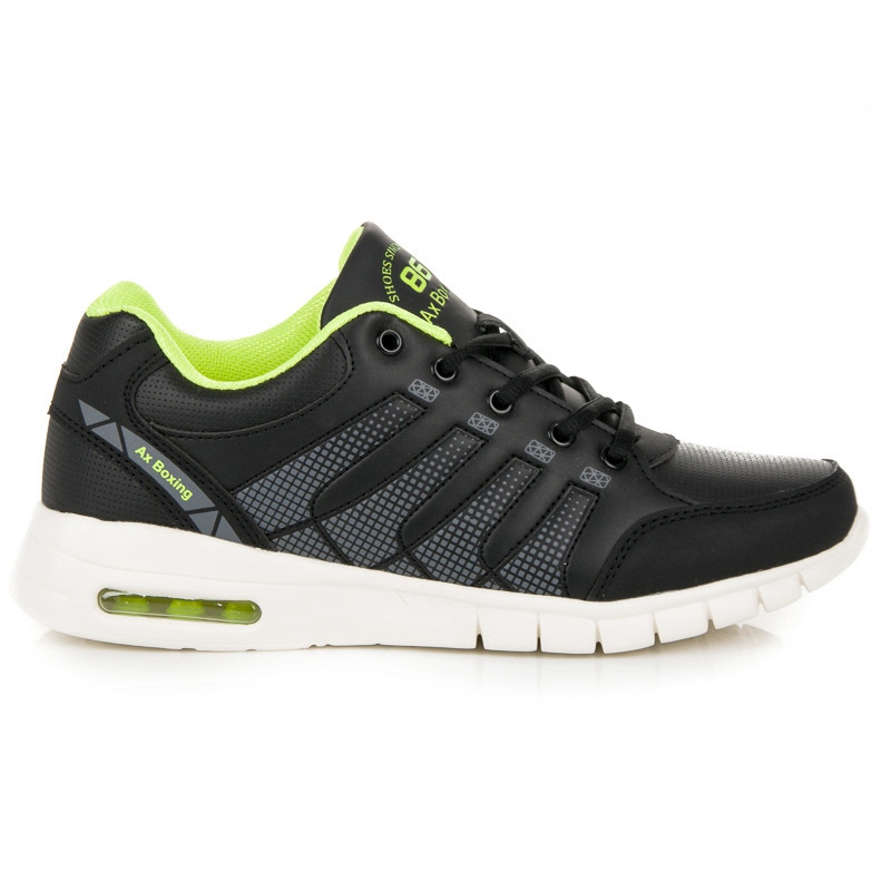 Axe Boxing - svarta sportskor för män som värdesätter komfort och ett modernt utseende. Modellen kombinerar en tidlös svart ovandel med en kontrasterande vit sula och en energisk, neongrön inredning - en subtil accent som gör att de sticker ut från mängden.