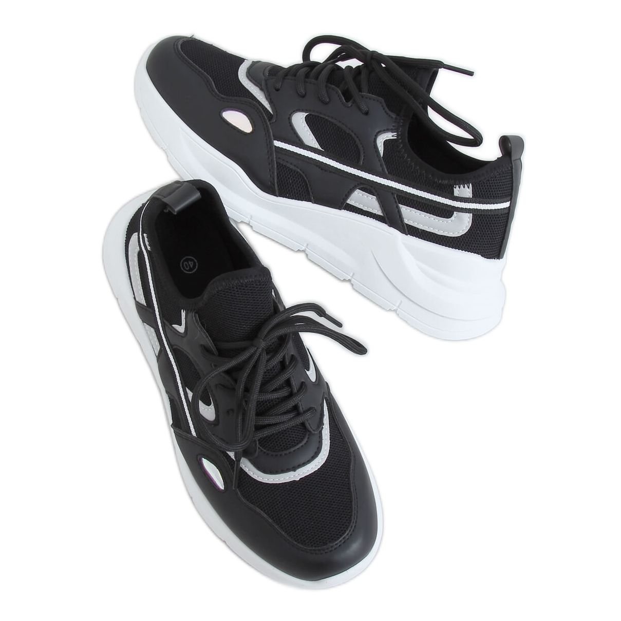 Svarta sportskor B0-560 Black-A Stylish Must-Have-säsongen. Lace-up kvinnors sneakers som förbinder urban komfort med en fashionabel, glamour accent: lågt, lågklippt snitt med en spektakulär 4 cm-plattform, som optiskt förlänger benet och ger en sportig styling karaktär.