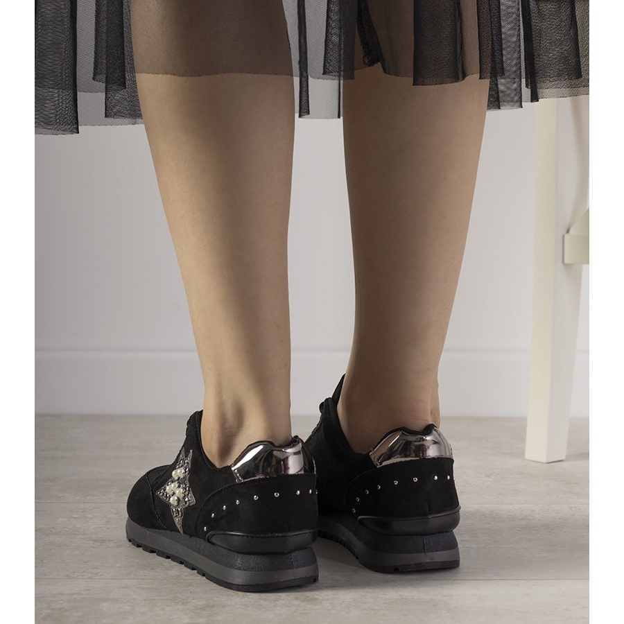 Detaljer: Svarta sportskor som är dekorerade med linjal dubbar