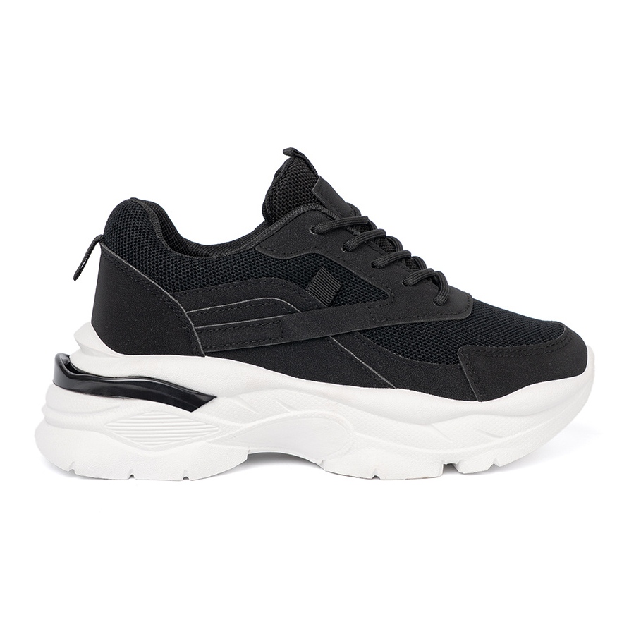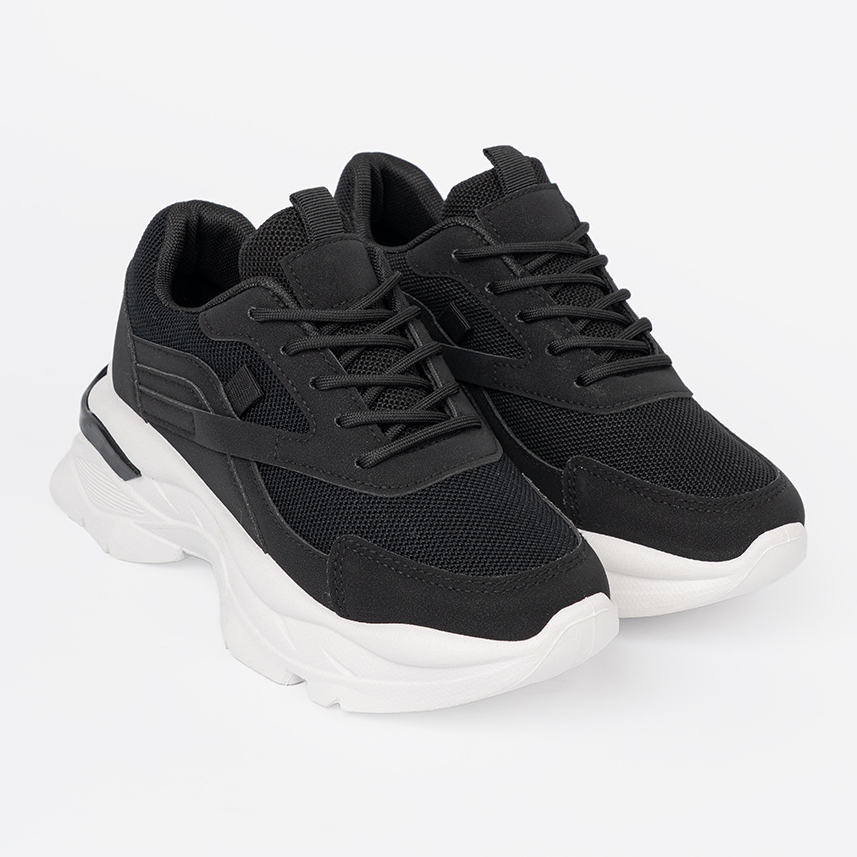Shelvt Shelvt Svarta sportsneakers på en tjock vit sula