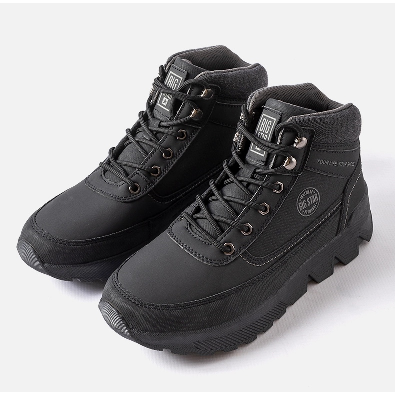 Svarta sportstövlar Big Star MM174016 är ett idealiskt förslag för män som värdesätter funktionalitet och stil. Dessa höga skor i en klassisk svart färg kommer att vara ett perfekt val för kallare dagar, speciellt under höst-vintersäsongen.