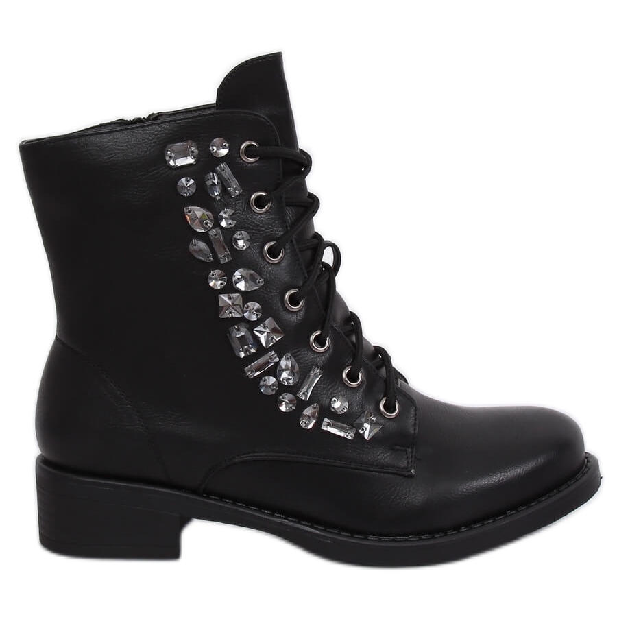 Vi presenterar snygga arbetarstövlar med svarta stenar (modell 0-268 Svart), som perfekt kommer att komplettera varje vardagsstyling. Dessa fashionabla platta skor kombinerar komfort och elegans, och deras unika design med glänsande stenar på ovandelen lockar uppmärksamhet och framhäver individualitet.