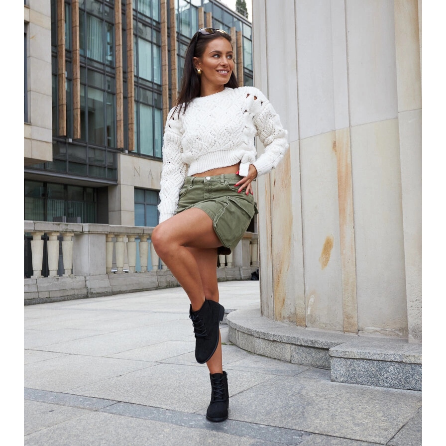 Eleganta och bekväma stövlar som kommer att ge prakt till varje vinterstylisering. Den runda näsan ger dem subtilitet, och den höga övre nå vristen (15 cm) ger skydd och komfort under svalare dagar. Dekorativa strass lockar uppmärksamhet och betonar skorens unika natur - idealisk för både avslappnade uppsättningar och för kvällsutflykter.