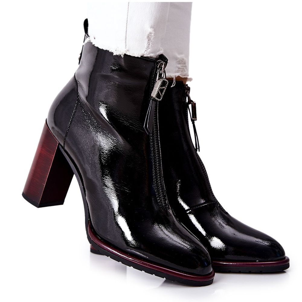 S.Barski S.Barski Svarta stövlar för kvinnor lackerade på en Cofton -stolpe