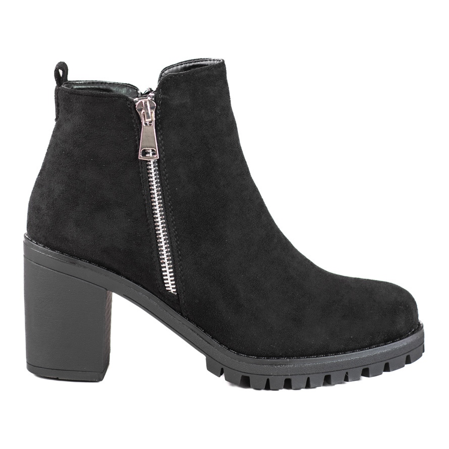 Den svarta färgen gör att dessa stövlar passar perfekt med en mängd olika outfits, från byxor till klänningar. Med en klack på 8 cm kommer dessa stövlar inte bara att förlänga dina ben optiskt, utan kommer också att ge stabilitet tack vare en rejäl sula med slitbana, gjord av plast.