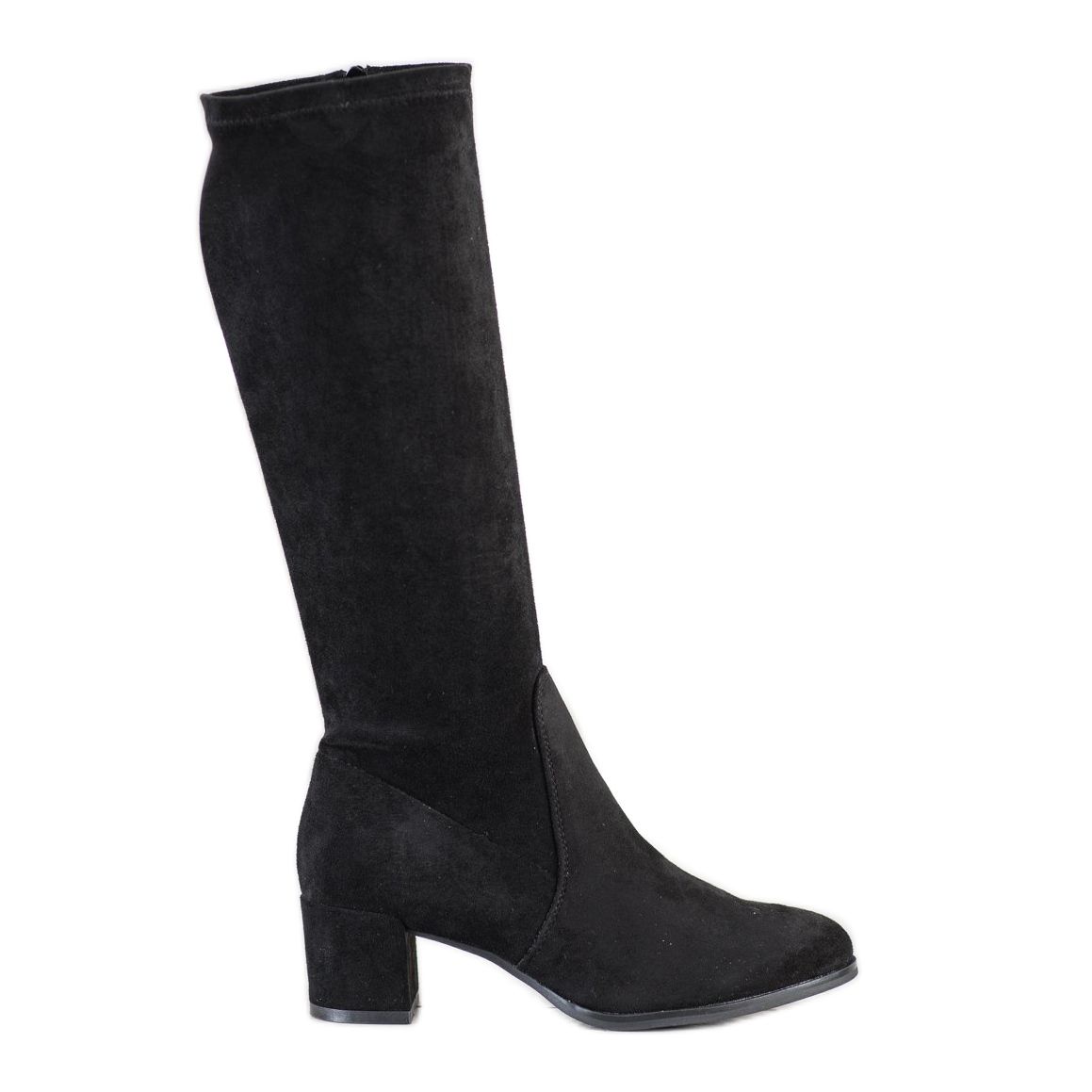 Stövlarna har ett klassiskt snitt, kompletterat med en rund tå, och en stabil 5 cm hög klack säkerställer komforten att bära. Den övre bredden på 34 cm och knähöjden ger dem karaktär och gör att de matchar perfekt med olika stilar. En inbyggd, förstyvad hälräknare och en solid, slät plastsula säkerställer inte bara stil utan också säkerhet när du går.