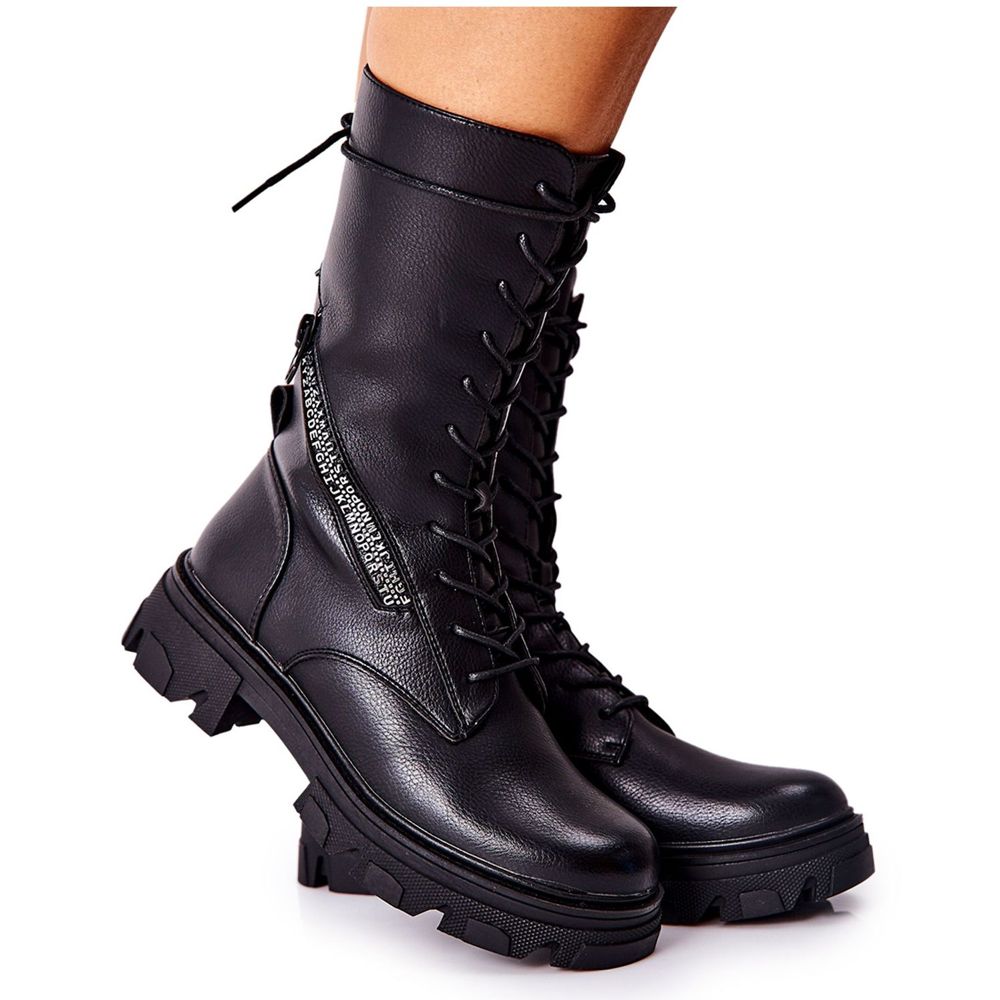 Skorna kännetecknas av en stabil plattform med en höjd på 2,5 cm och en platt klack med en höjd på 4,5 cm, vilket säkerställer komfort vid användning, även på längre sträckor. Dessutom gör sidodragkedjan och snörningen det lättare att ta på, och den dekorativa dragkedjan ger dem en unik karaktär.