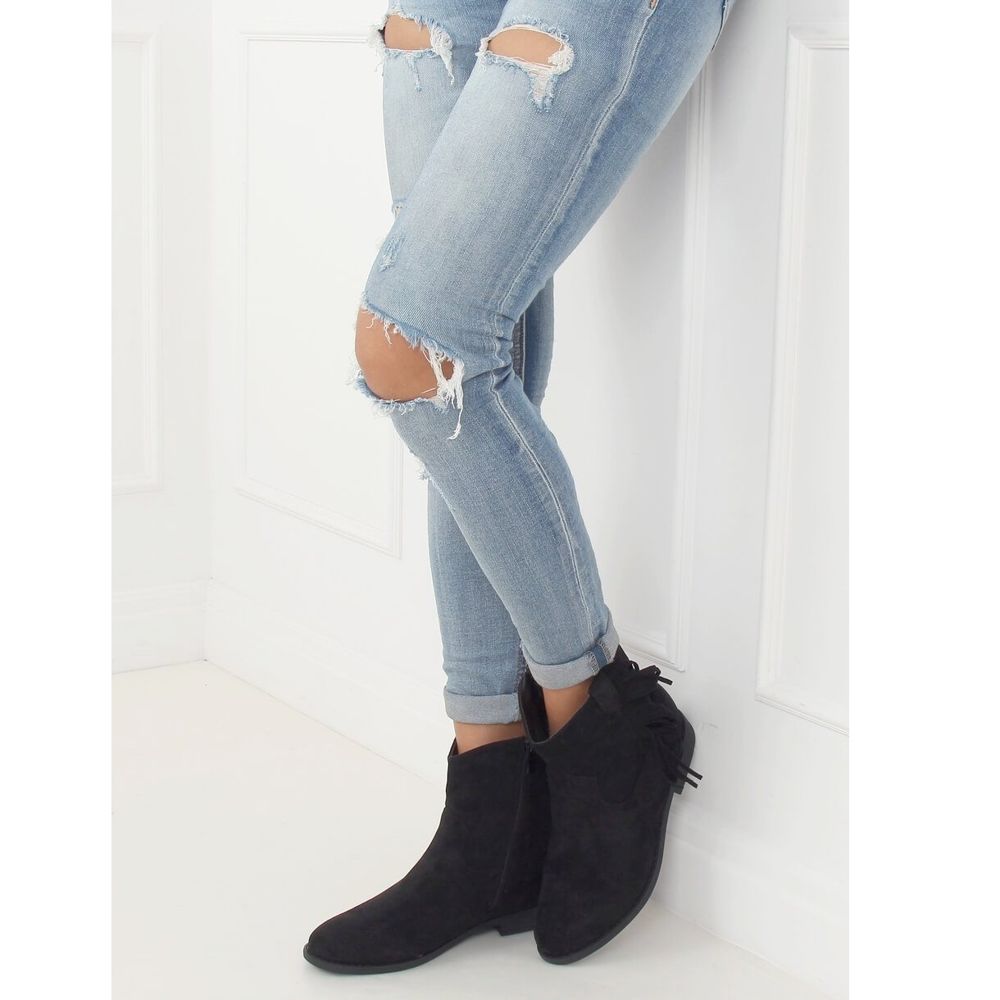 688-A99 Svarta ankelboots är ett förslag för kvinnor som värdesätter originalitet och komfort i ett. Tveka inte och gör dessa fashionabla ankelboots till en del av din garderob idag! Tillverkarens originalförpackning i form av en elegant ask gör dem också till en bra presentidé. Välj en vardagsstil och framhäv din individualitet med ankelboots i boho-stil!